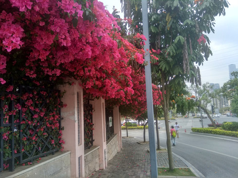 南宁也可叫花城,除了公园,街边也是红花出墙,这里的三角梅开得特旺。