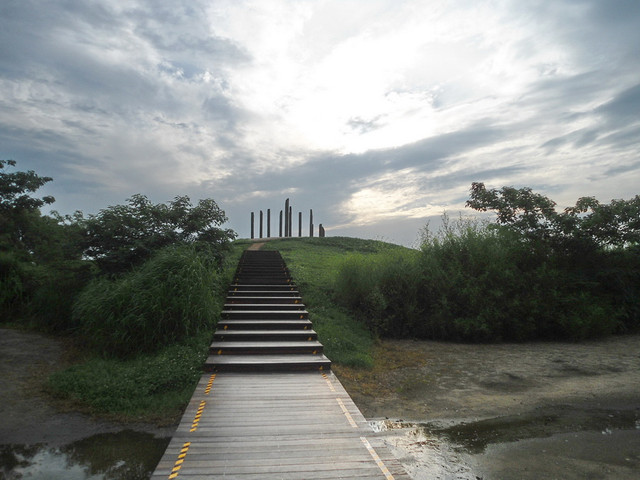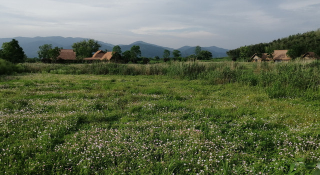 在遗址的中央,围绕原始遗迹造了一条朝圣之路,大家一定要沿路走上丘顶去看看,在那长河落日之时,白鹭群飞,黄花摇曳,田野里笼罩着金光,此时此刻自己仿佛也快变成了一个原始人(如果脱掉现代的衣物,披上一条草裙,那就更像了,哈哈)。