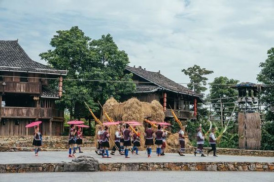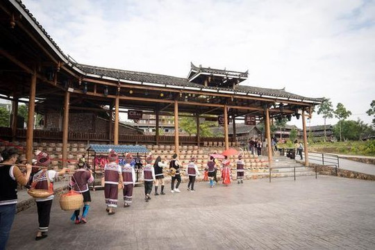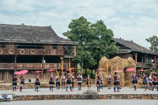 寨子里保留着老街、鼓楼、旧巷,人们穿戴传统服饰,传承着百家宴的风俗。