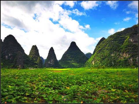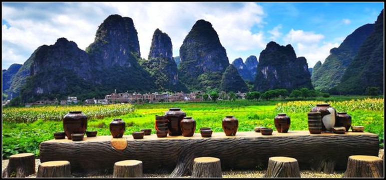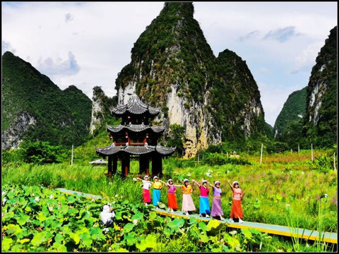 早餐后从黄姚古镇到 贺州 钟山水墨田园--百里画廊游玩,下午到达 阳朔 ,坐游船游览漓江。