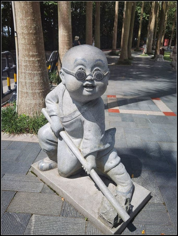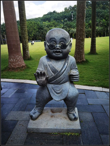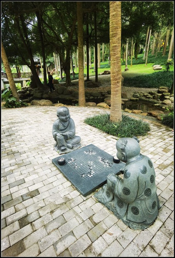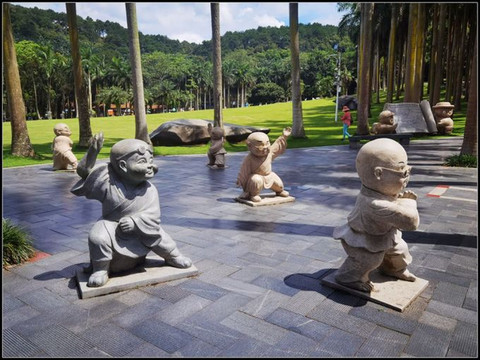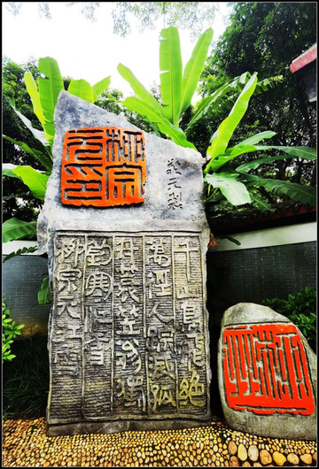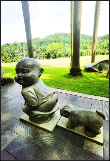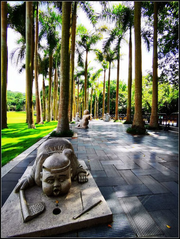 看完“七星伴月”,沿着石板路走去看“九龙五虎”。