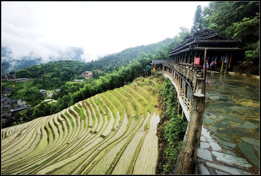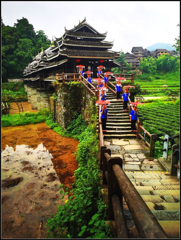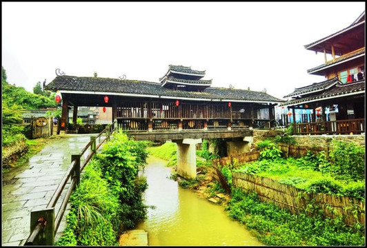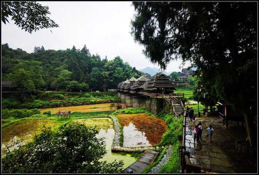 下午赶到 三江 侗族自治县的程阳八寨景区。在 广西 与 湖南 、 贵州 接壤的 三江 县境内,有八个连成一片的侗族山寨,不仅完好地保存着侗族的木楼建筑、服装饰品、歌舞文化、生活习俗等古老传统,而且在与现代生活交融中继续发扬光大, 成功 地发展为令人流连忘返的旅游新村。