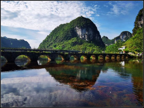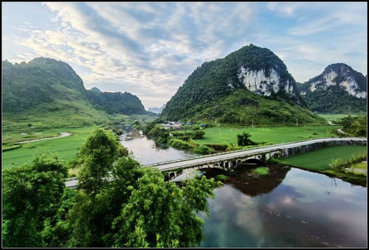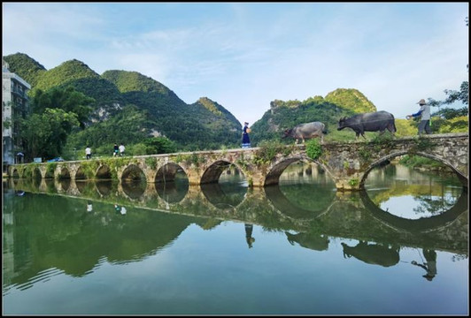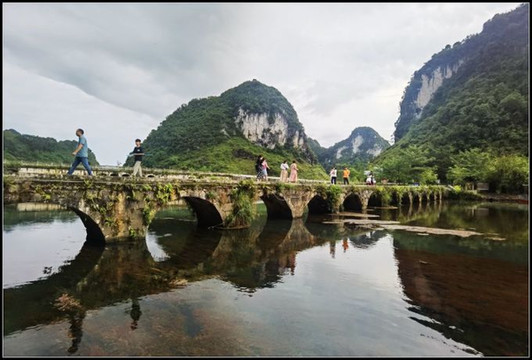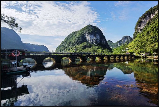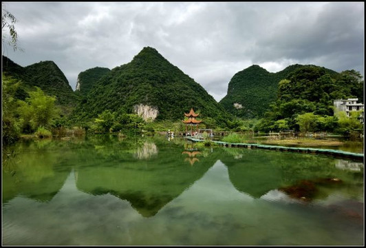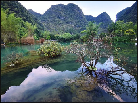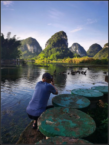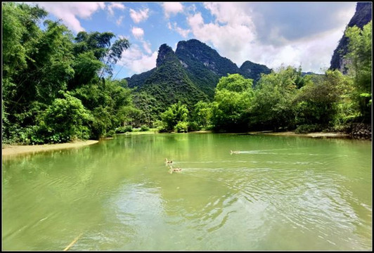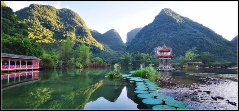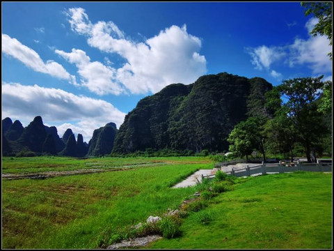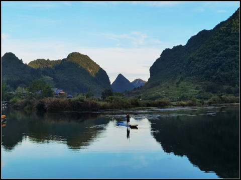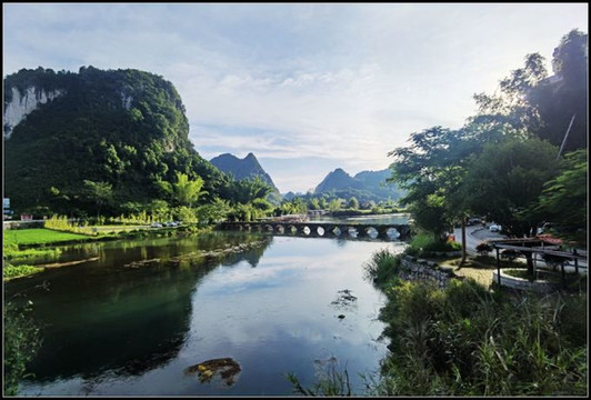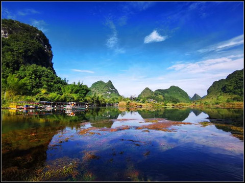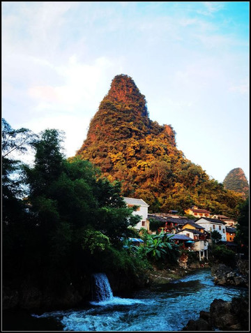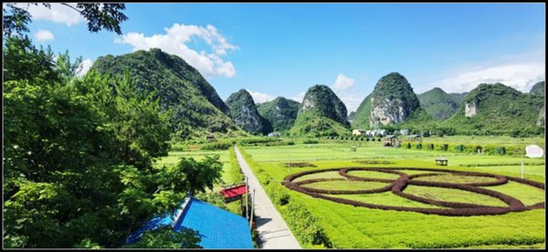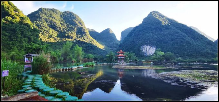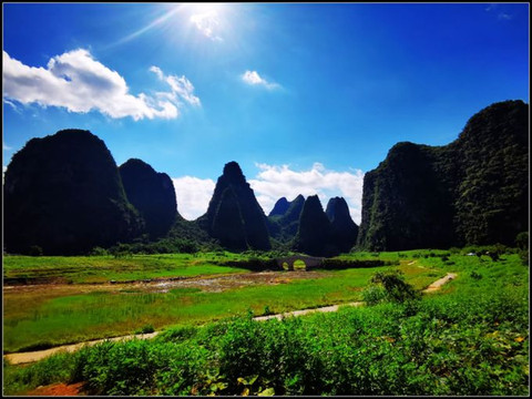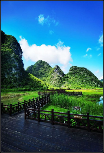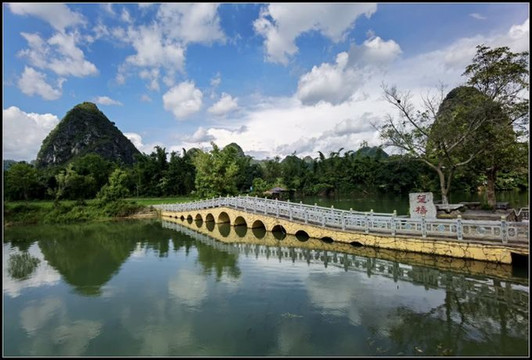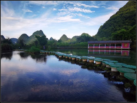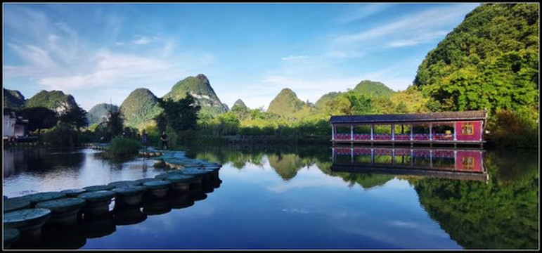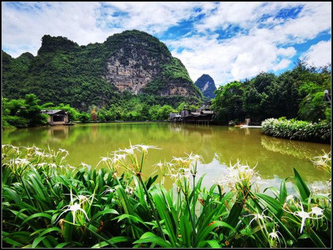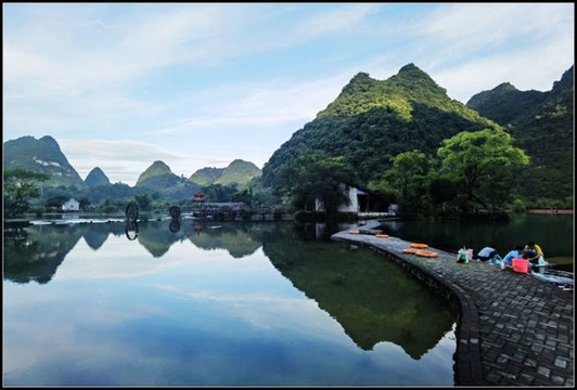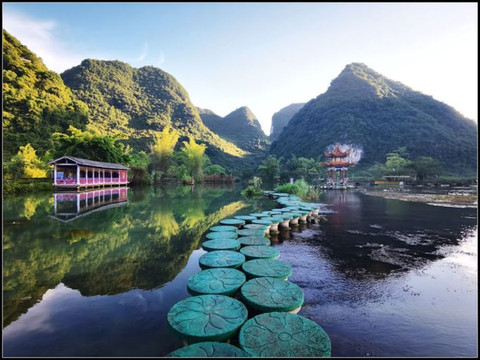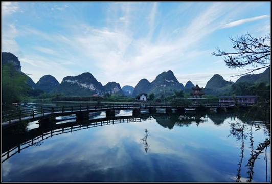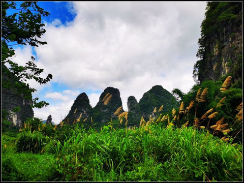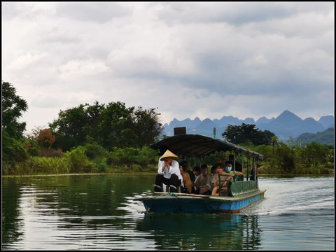 游览 大新 县的明仕田园景区。景区为国家AAAA级景点。方圆20公里的景区山清水秀,山环水绕,素有小 桂林 之称。