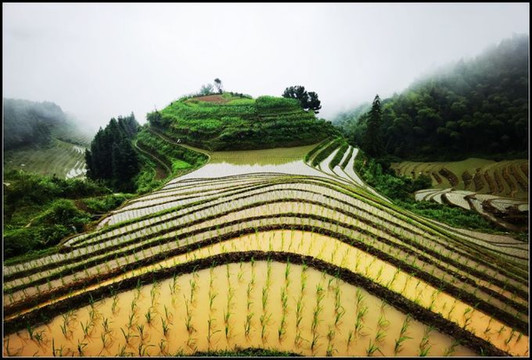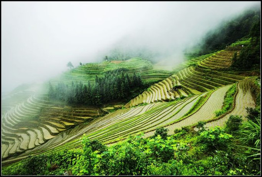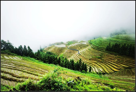云雾一会挡住梯田,一会又散去,让我们美美的欣赏