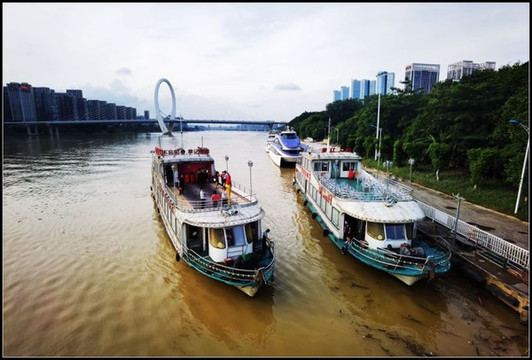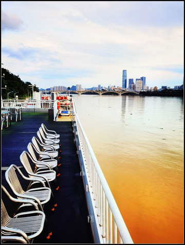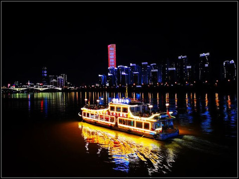 晚上应朋友邀请,乘船夜游 柳江 ,并在船上晚餐。