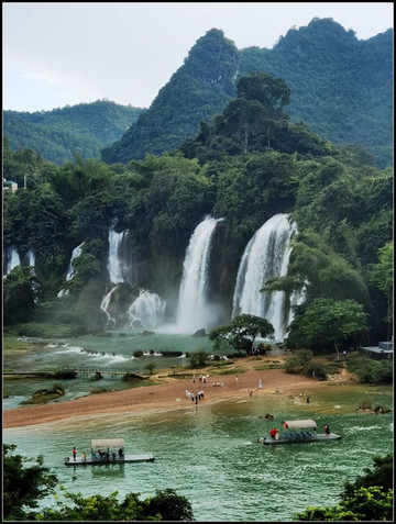 河对岸就是 越南 ,也难得游客可以乘坐竹筏随意靠近我方的大瀑布游览,而 中国 游客只能在远处望瀑兴叹。