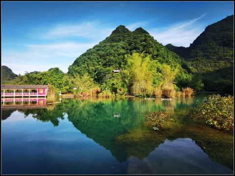 鹅泉青山环绕、田园如画、翠竹婆娑、水清如镜、鱼虾如梭,在这里可以欣赏到一幅幅画卷式的壮乡田园美景,体会山情野趣的韵味。