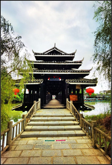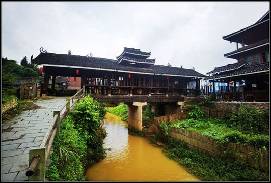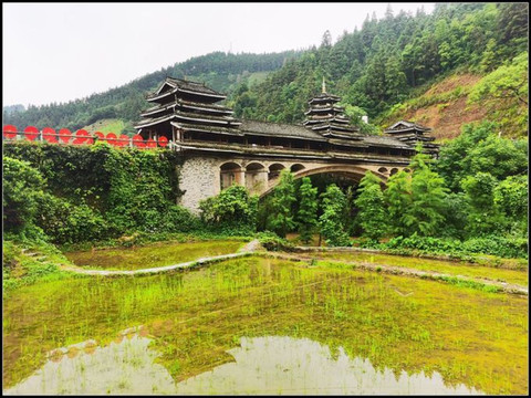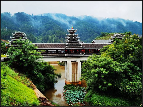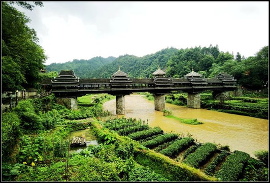 程阳 永济 桥,又叫程阳风雨桥、程阳回龙桥。建于1912年,历时12年,于1924年建成。程阳 永济 桥横跨林溪河,是典型的侗族建筑,为石墩木结构楼阁式建筑。主要由木料和石料建成,有2台3墩4孔。墩台上建有5座塔式桥亭和19间桥廊,亭廊相连。桥中亭子飞檐高翘;桥的壁柱、瓦檐、雕花刻画。程阳 永济 桥是建筑的集大成者,集廊、亭、塔三者于一身,在中外建筑史上独具风韵。是侗寨风雨桥的代表作,是目前保存最好、规模最大的风雨桥,是侗乡人民智慧的结晶,也是 中国 木建筑中的艺术珍品。1982年程阳 永济 桥被列为第二批全国重点文物保护单位。