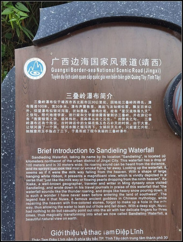 三叠岭瀑布距 靖西 县城30公里,因地处三叠岭而得名,瀑布高100多米,宽约30米,为 靖西 古八景之一。