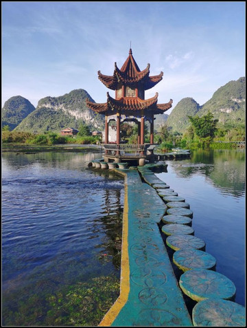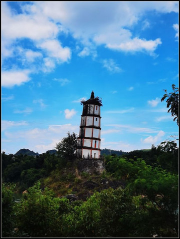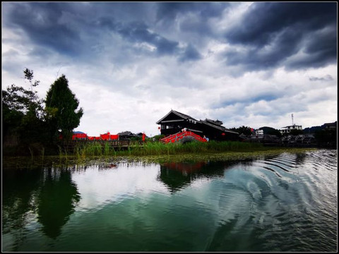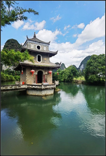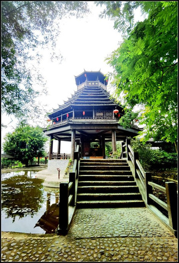 旧州古镇的 文昌 阁,四角型三层,依鹅泉河而建,此阁兀立水中,犹如玉带上明珠,独具风采。此阁建于明清时代,