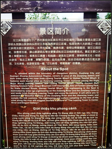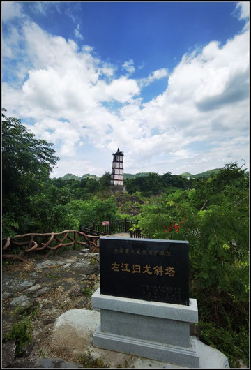 离开 南宁 ,当天中午到达 百色 地区的 崇左 市,游览当地著名的景点左江“斜塔”。