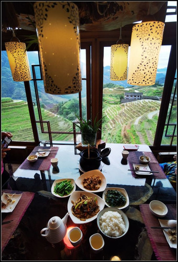 在客栈的晚餐,看着外面的美景,品尝美食,真令人愉悦。