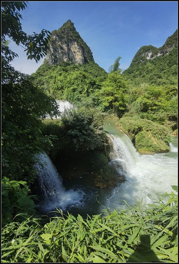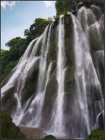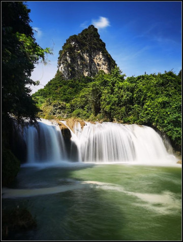 爱布瀑布群风景是由爱布、马屯、惠泽等三个秀丽壮观、形状各异的大瀑布聚集而成,因其在 靖西 市化峒镇爱布村村域内而得名。上源为龙潭河及鹅泉两河汇流后成为 靖西 最大河流难滩河,是德天瀑布水源头。这里目前不收费,也无人管理,是原生态旅游风景区。