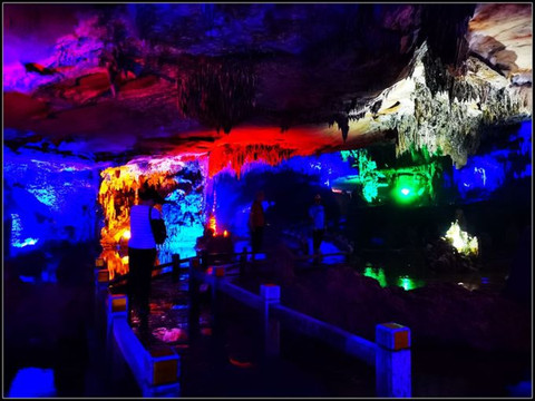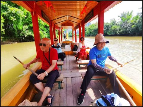 荔江湾景区景美人少,当天只有我们4个游客,由一名导游带领,先坐游船游荔江,然后换乘龙舟由我们自己划,上岸后游“天宫岩”溶洞。