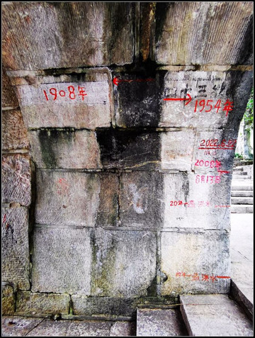 阳朔 南熏门码头的南熏亭下门洞记录的漓江历年来的最高洪水位。今年六月份的洪水仅次于1908年和1954年。