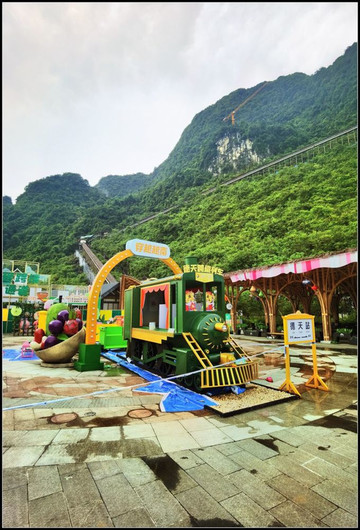 在半山的观景台俯瞰鹅泉景区,真好像是一盆精致浓缩的山水盆景。