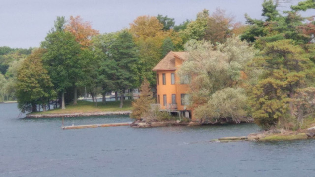 千岛湖上的岛,一个又一个,住人的很少,只有稍大些的蛇岛,鸟岛可以上去。加东的千岛湖是美加的边境线。湖中各具形态的小别墅是岛主人小天地。一栋房子,一小块土地,仅此而已,生活并不方便。极符合欧美人的个性:独立随性。这里是度假的好地方。