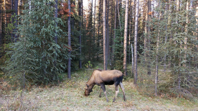 4、早晨经药湖至玛琳湖坐游船,路上好像是动物世界,大角羊、熊纷纷从我们的车前通过。看到动物好兴奋,尤其是熊,他远远的从马路这边到对面的山上,小黑熊看到我们快速的避开,他不想惹事。大角羊就不那么聪明了,缓慢的排队散步,没有害怕的样子。野马在不远处悠闲的吃着草,机警的小鹿不给我们正面拍照的机会。可能是天气的缘故,阴天的药湖空旷、宽阔并没有特殊的地方,从一片沙滩走进湖畔,静静的湖水就在脚前面。