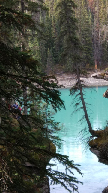 到玛琳湖已经9:30了,换了10:30的船票,我们绕着湖走进了树林,没有规整的路,我们走了就成了路。走出树林到了湖对岸,小松鼠边唱歌边在树枝间跑动,第一次听到松鼠歌唱,感受到他心情不错。一对情侣租了手划船,艰难的把船推人湖中,为绿色绸面上添了一抹红。马琳湖游船是传统的项目。时长半小时,湖水随着船行驶越来越蓝,到了群山环抱终点精灵岛,水碧蓝清澈。停靠到终点后,上岛登高远眺。传说这是上帝开会的地方。在小岛上可以看到明信片上的著名风景,贾斯珀国家公园的风景象征。返回的途中,游船增多,年轻的船长用各种手势和相遇的船长打招呼,他们不急不躁,每个人都带着微笑,他们生在这里,享受工作带来的乐趣。