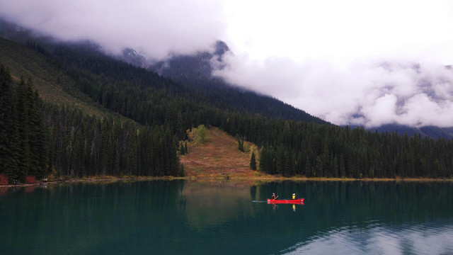 库克尼国家公园的路车很少,开了大约一小时,景色没有很大改变,一对夫妇引起我的注意。他们停下车,在路边的栅栏旁观望着,直觉告诉我有动物。果然,一只黑熊见到我们转身离开了。这是在卡尔加里第二次见到熊。导航失灵了,不知道还有多远,于是掉头转向yoho公园。很快见到一个大停车场,这里的停车场和景点都不需要步行太远的。又见一片绿色的湖,正如她的名字翡翠一样,洁净碧绿,这里的树已经变得斑斓,红黄绿蓝是树叶、湖和天的颜色,一尘不染。游人很多,却不嘈杂,都被大自然的美惊叹不忍打破宁静。到这里卡尔加里行程结束。加拿大人很自豪的说落基山加拿大侧最美,的确,非常幸运在最美的季节到了最美的地方。车又回在wolf街重回班夫,点一份卡尔加里最著名的牛排结束这段精彩的旅程。