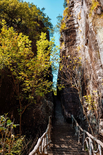 害怕走玻璃桥的话也可以走这个陡峭的通天峡,反正都很刺激,就看你自己选择了。