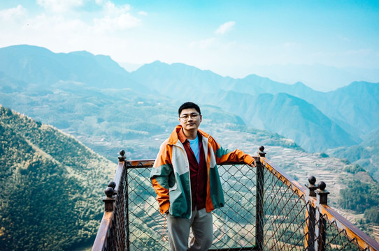 这里向远处看去也是视野很棒的梯田、群山景观,抬头仰望就是景区里的玻璃桥。