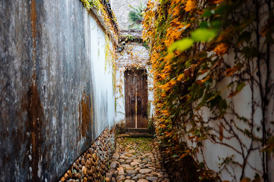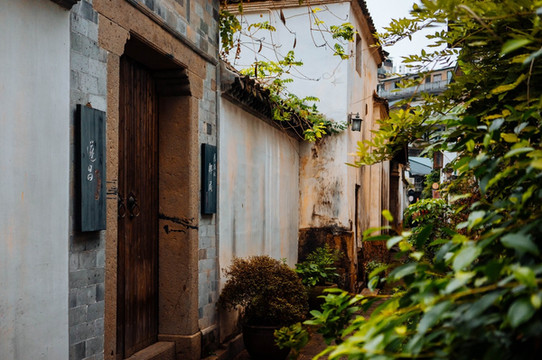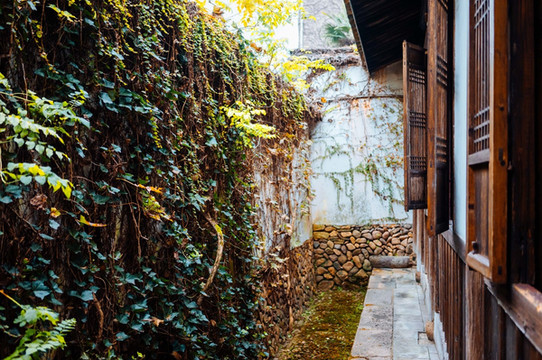 快到的时候发现周围的建筑风格立马转变,会先看到青砖古巷,两边被绿植覆盖。