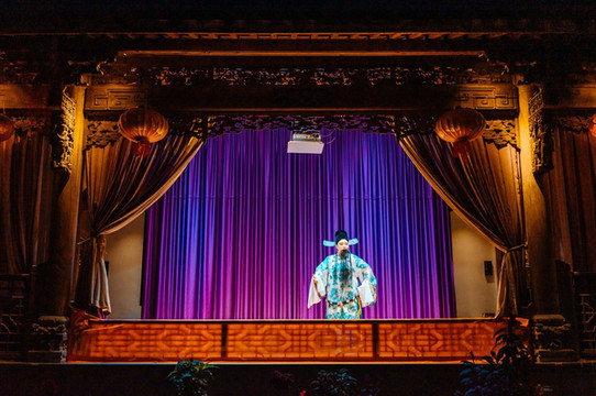 不过如果觉得天气冷,可以先坐在室内吃一会,等戏开演了再走出来看。