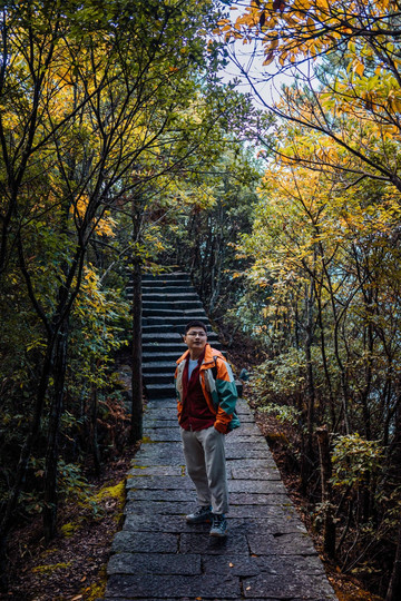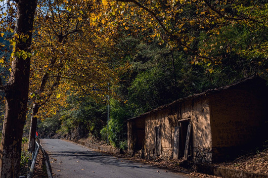 秋天的落叶渐渐铺满了山路