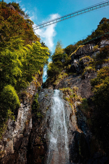 再走一段山路,看到廊桥的时候,就已经能听到水流声了。