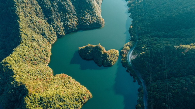 高空视角赏仙侠湖