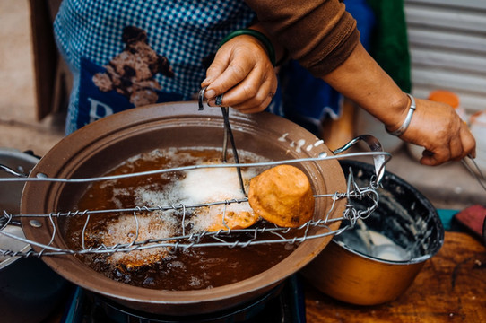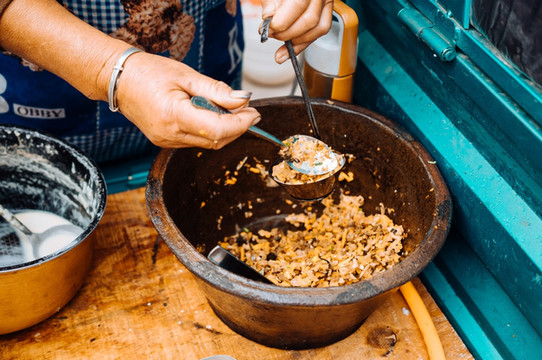 本来看到有个对外开放的疗养院食堂,后来走到了才知道已经是很久之前了。没有吃到午饭,就在门口有个卖小吃的,5块钱3个,当地人围过来强烈推荐我吃,果然味道还不错。