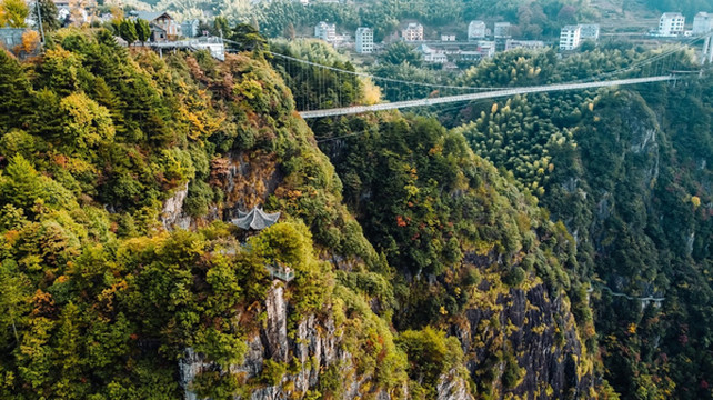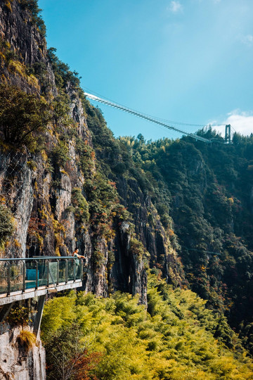 不用到景区里也能看到的,就是这个玻璃桥,高高悬挂在两座山之间。