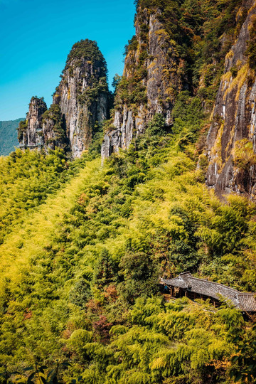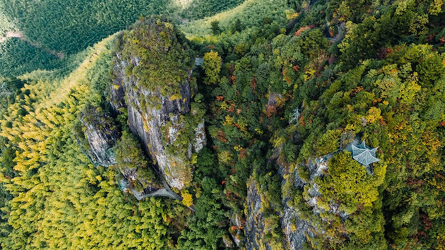 三个耸立的石笋山,造型错落有致,这也是南尖岩的标志景点。
