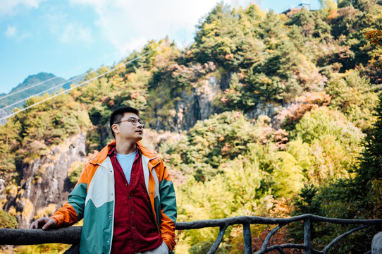 我们最先到达的就是观云亭。这里特意做了一个往外延展的观景台,可以一览近处的玻璃桥和 天柱 峰、文笔峰,俯瞰山下的游客,远眺有梯田、群山,都觉得一切好渺小,这是个必打卡的观景台。