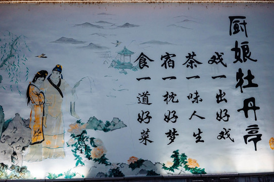 逛过了汤显祖纪念馆,还沉浸在那样的古朴氛围里,刚好搜到有一家叫《厨娘·牡丹亭》的餐厅,能够品美食的同时还能赏戏。