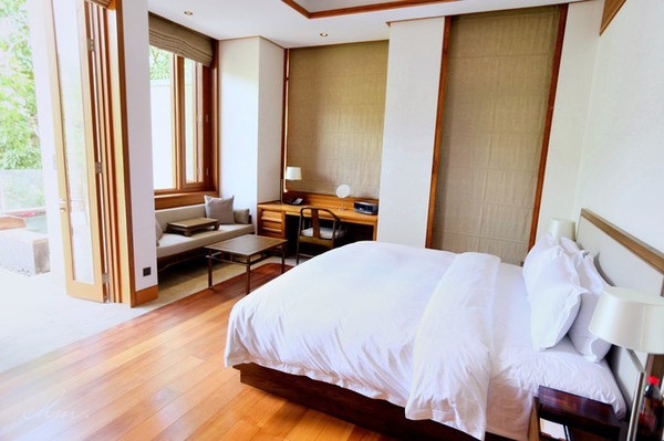 每套别墅共有4间房,可联通,每一间都配备有独立泡池。
