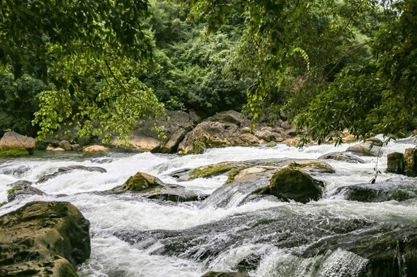 陡坡塘瀑布的上游是白水河,平水时,白水河流量不大,水流清澈 ,陡坡塘瀑布显得十分清秀妩媚。