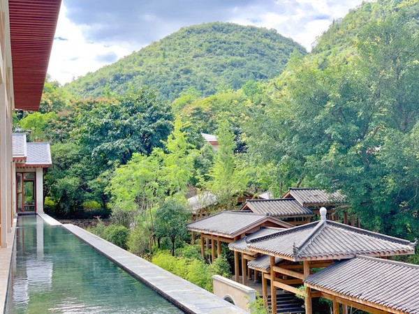 酒店为典型的新中式建筑,总占地面积高达19万平方米,却只设有16栋别墅。