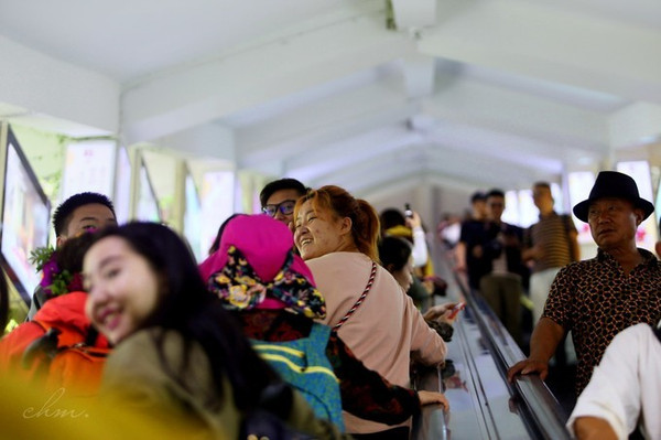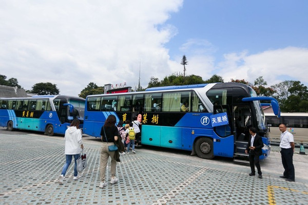 3个景区之间通过乘坐交通大巴进行目的地到达。乘坐大巴的人流量也是相当巨大的。50元/人。交通车每个景点一次,有效期也是两天。