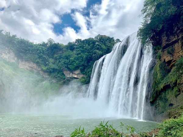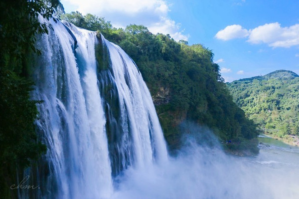 我们去的时候水量很大,天气又好,显得黄果树瀑布看起来气势恢宏。