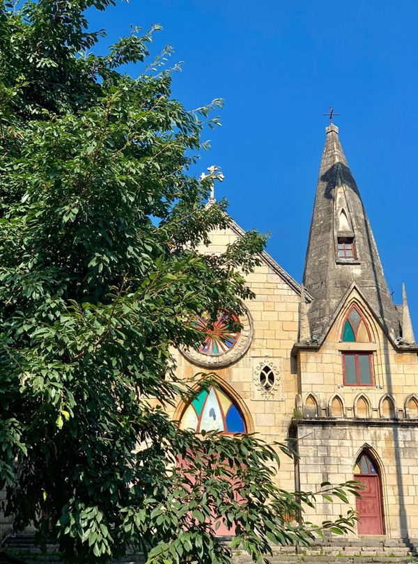 这座天主教堂,始建于清朝光绪年间二十四年(1898),同时还是二战的见证者,当时美国援华士兵经过这里,会进去坐一会。