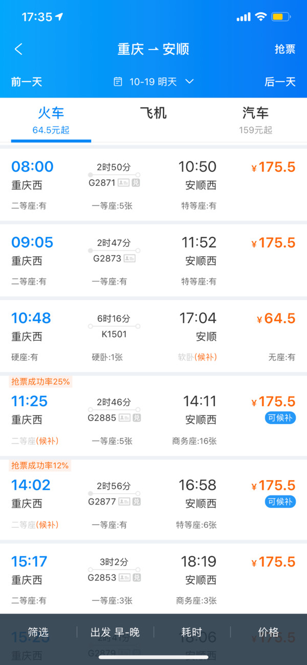 重庆每天来回安顺的动车班次特别多,然后到达安顺再乘坐大巴到黄果树瀑布大约需要1小时左右。