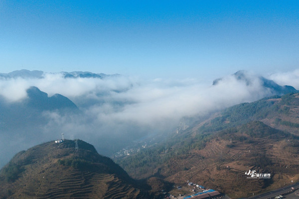 流动的云雾笼罩着乌蒙群山,苍翠的山峰时隐时现,虽没有横无际涯的云海那般浩瀚,却也有着独特的朦胧之美。