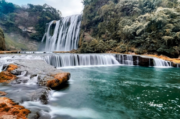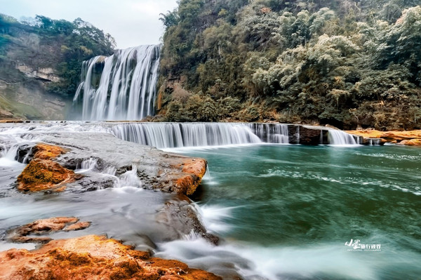 黄果树瀑布群是由18个风韵各异的大小瀑布组成,除了最为壮观的黄果树瀑布,还有滴水滩、陡坡塘等垂天白练,构成了世界上最典型、最壮观的喀斯特瀑布群。