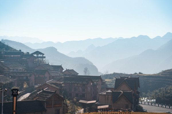 晨曦中的海坪彝族小镇,清风的吹拂下,山间的雾气一点点散去。