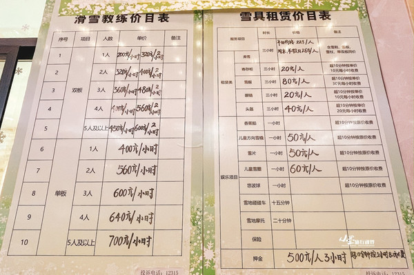 这是滑雪场的收费目录。