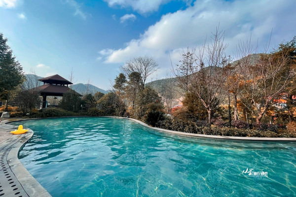 中午用了午饭,我们前往六盘水六枝特区布依族彝族乡的落别龙井生态温泉度假区,感受贵州冬季氤氲的暖意。