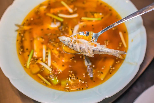 泡菜花骨鱼则选用青城山特色冷水鱼做成,佐料里有仔姜和青菜丝,酸爽开胃,丝瓜打底很清爽。