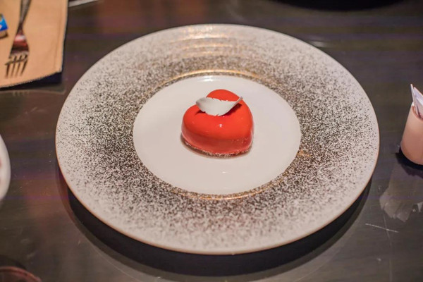 甜品的味道也不错。是草莓味,心形和顶层的羽毛造型做点缀,颜值也很赞。